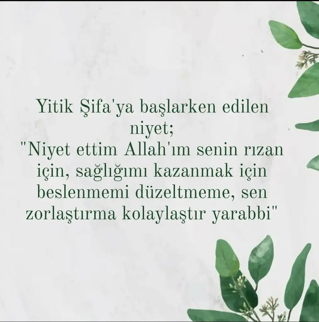 Niyet ediyoruz. Niyetsiz yapılan hiç bir işten hayr gelmez. Ve bu niyeti yaparken içinizden tüm seviyeleri yani tamamlayıp bitirmeyi niyet etmeniz gerekiyor. Yani biz burada karatay tarzı diyet yapma amacında değiliz. Asıl niyetimiz ileride açlık orucu yapabilmeye muktedir olmak için şimdiden kendimizi hazırlamak. Hayatında hiç açlık orucu yapmamış insanlar bunu grupta yapmayı başardılarsa, sizlerde yapabilirsiniz. Bir başka insanın yaptığını sizde yapabilirsiniz, ezikmisiniz siz? Tabi ki değilsiniz. O zaman haydi niyetinizi ediniz. "Niyet ettim Allah'ım senin rızan için, sağlığımı kazanmak için beslenmemi düzeltmeme, sen zorlaştırma kolaylaştır yarabbi" deyip başlayacağınız tarih akşamı sofraya oturup aşağıda anlattığım şekilde yemek yiyorsunuz.