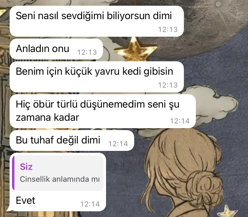 annesine bile anlatmış beni çocuk ciddi düşünüyor ve bağlanıyor bu korkutuyor