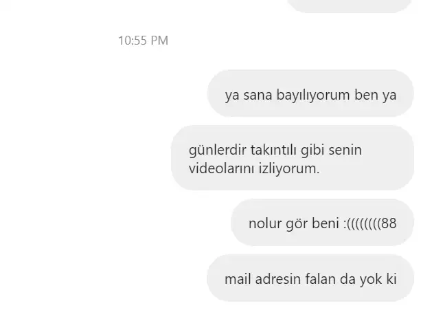 Youtube da karsima bir anda cikti.Videolari o kadar guzel ki ayrıca sesi de cok etkileyici.1k abonesi var hemen instadan mesaj attim.Ama dönüp donmeyecegini bilmiyorum.Cok etkilendim cidden ya napaiyim hanimlar
