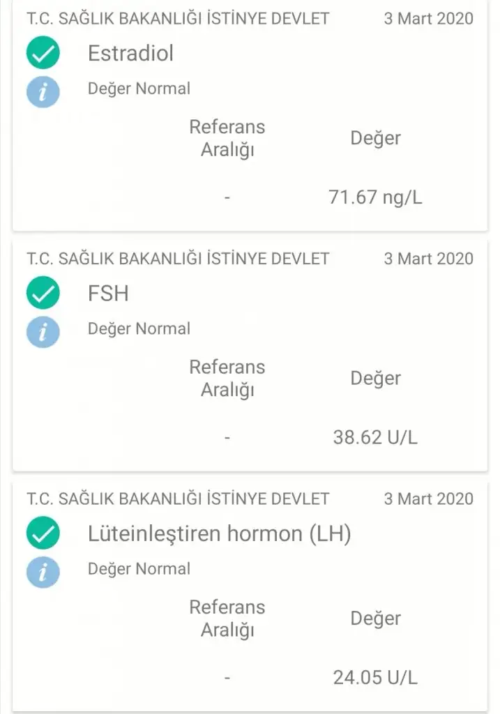 İnşallah Rabbim bu süreçte doğal yoldan hamile kalmanı nasib eder. Bende de AMH düşük uğraşıyorum canım. Saraçoğlu nun hangi kurlerini nasıl yaptın ve hormon değerlerin kaça indi, biraz bilgi verirmisin canım, bizlere yol göstermesi açısındanKızlar bende 1 yıllık evliyim. 32 yasındayım. Bekarken, evliyken kadın doguma cok sık giderdim. Butun kontrollerimi yaptırırdım. 1 yıl sonunda bebek istemeye basladık tekrar doktora gıttım. Hıc bisey yok dendi. Normal yollarla dene olmazsa 1 sene sonra gel dedi. Ben adetımden 2 hafta sonra tekrar adet olunca doktora gıttım. Hormon testı istedi. fsh. 18 lh. 75 estradıol. 350lerdeydı amh 0.11 cıktı. hepsı tavan yapmıs. doktor menopuzun esiğindesin dedi. Normal yolla cocugun olmaz hemen tup bebek yaptır dedi. Ben tabi aglayarak cıktım.. Daha önce muayene olan doktorlar nasıl olduda anlamadı o zaman dedim. Cok ofkelendım. Gıdıp hepsine hesap sormak istedim. Tup bebekle tanısmamda boylece basladı. Malesef tup bebek doktorları anladı. Cok doktor arastırdım. Ozel devlet. Malesef bende corona ya denk geldim. O surecde İbrahim saraçoğlu kurlerını yaptım. Cok faydasını gordum. Tup bebege kadarda vucudumu hazırladım. Doktora gıttıgım de degerlerım gercekten cok dusmustu doktor ne kullandın dedı. ama yumurta yine az dedı. Onun ıcın apar topar basladık.genetık testlerı tahliller vs. Hersey normal cıktı. Sadece azalmıs yumurta rezervı erken menopoz Malesef sülalede tek benim. Benım surec cok hızlı oldu ıgneler vs vucudum hemen tepki verdi. 4 yumurtam toplandı 3. Dollendı 2 si 5.gun emrıyosu oldu. Cok iyi kalite dedı doktor. 1 tane Taze transfer oldum. Bı tanede donduruldu. Maalesef negatif sonuc aldım. Sımdı adet olunca doktor gel konusalım dedı. Dun gıttım konustum doktorumla ister olanı transfer edelim dedi istersen tekrar yumurta toplama ıslemı yapalım dedi. Bızde esimle eylule kadar biraz tatil yapmak istiyoruz hocam dedık.oda cok iyi fikir psikoloji bu surecde cok onemlı dedı. Ama haftada 3 gun bol bol beraber olun dedı. Olmazsa da 3 aydan fazla bekleme dedı. Biraz kendimi biraz vucudumu dinlendiricem maddi manevi cok yıprattı bu surec. Onun ıcın sizde ertelemeyin. Maalesef azalmıs yumurta rezervı gun gectıkce aleyhimize isliyor... Rabbim hepımızın yardımcısı olsun..