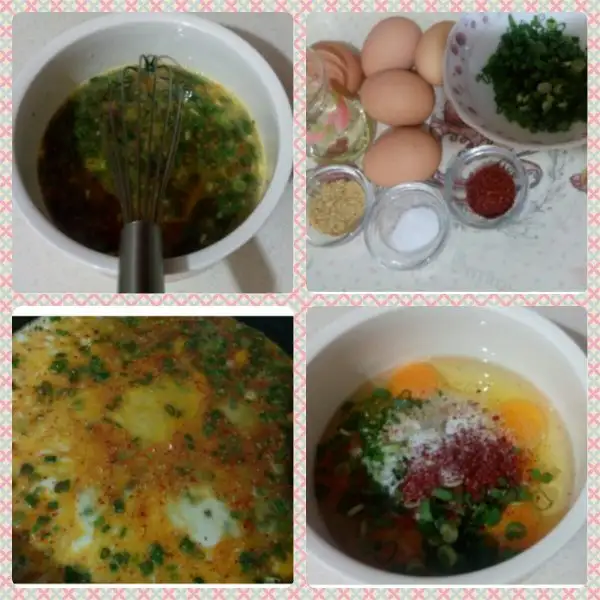 Yumurta, soğan, susam, pul biber ve tuzu kaba alıp çırpıyoruz.