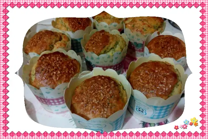 Harcı muffin kalıplarına paylaştırıyoruz. Üzerine susam serpip 180 derece ısıtılmış fırında 25- 30 dakika pişiriyoruz.