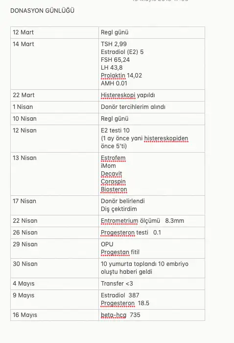 Maşallah süper hayirli olsun benim suan eşimde rahatsız kafam çok yoğun acaba hangi merkezde yaptrdiniz yumurta donasyonu muydu tekrar yazabilirmisinizBen şöyle bir çizelge oluşturmuştum. Belki birilerinin işine yarar diye ekte gönderiyorum. Ben bu forumda çok şey öğrendim. Allah hepinizden razı olsun. Ben de birilerine yardımcı olursam ne mutlu..