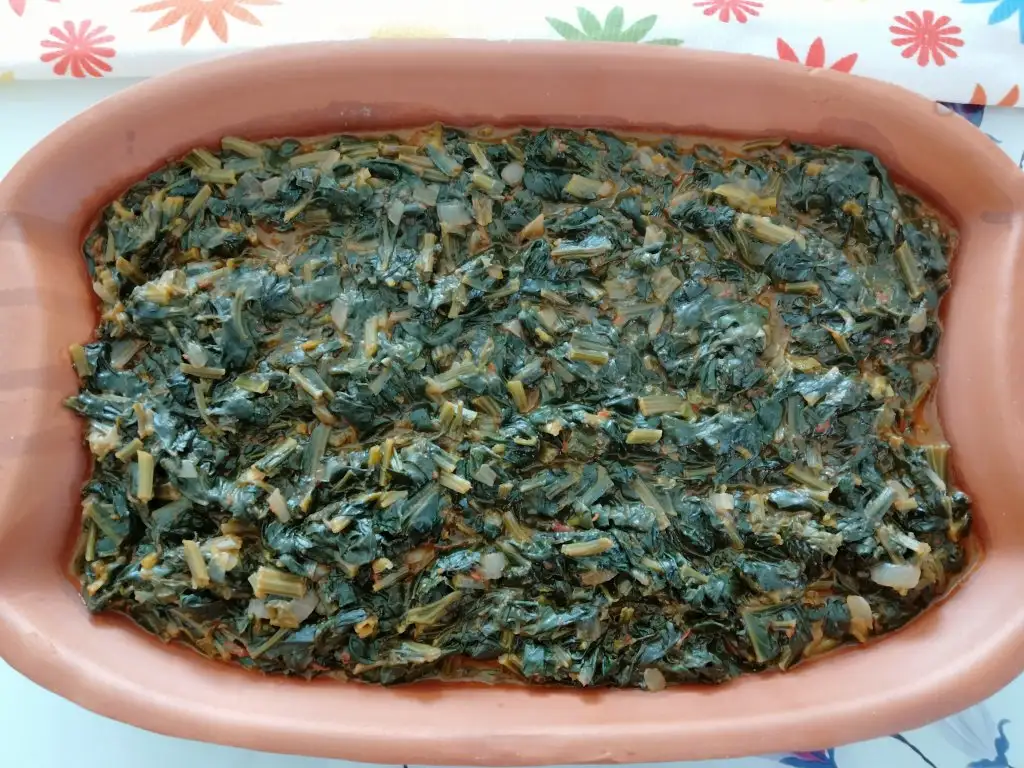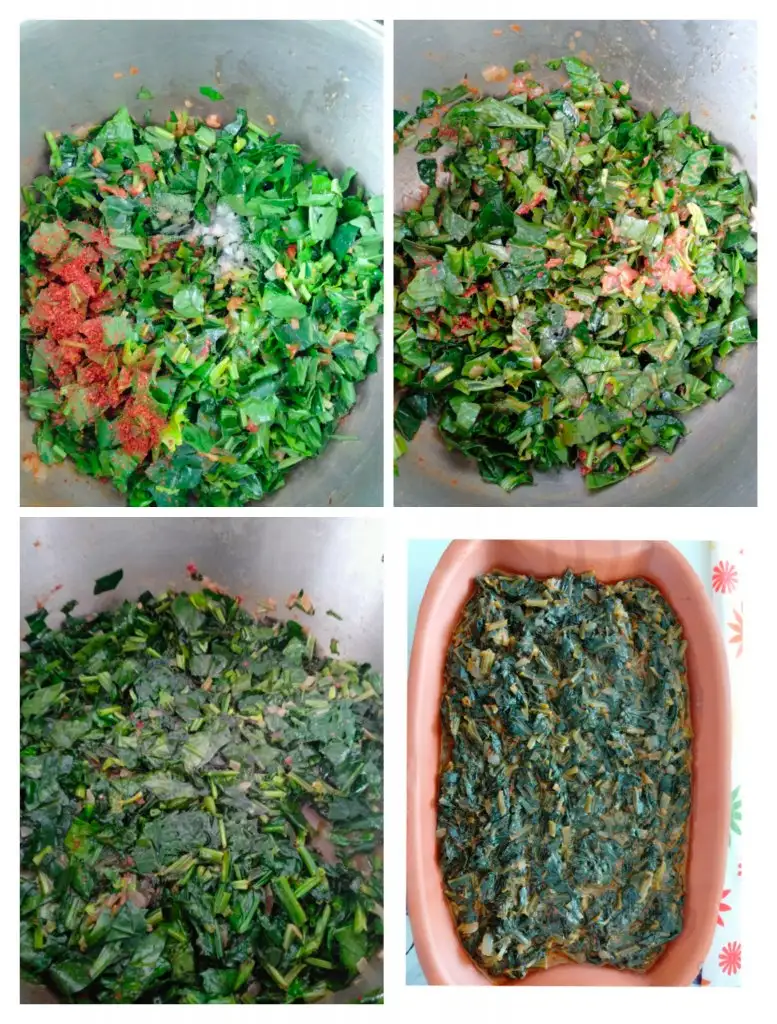 Ispanağı karıştırıp pişmeye bırakıyoruz.Suyunu salıp tekrar çekiyor.Daha sonra dilediğimiz bir fırın kabına alıyoruz.