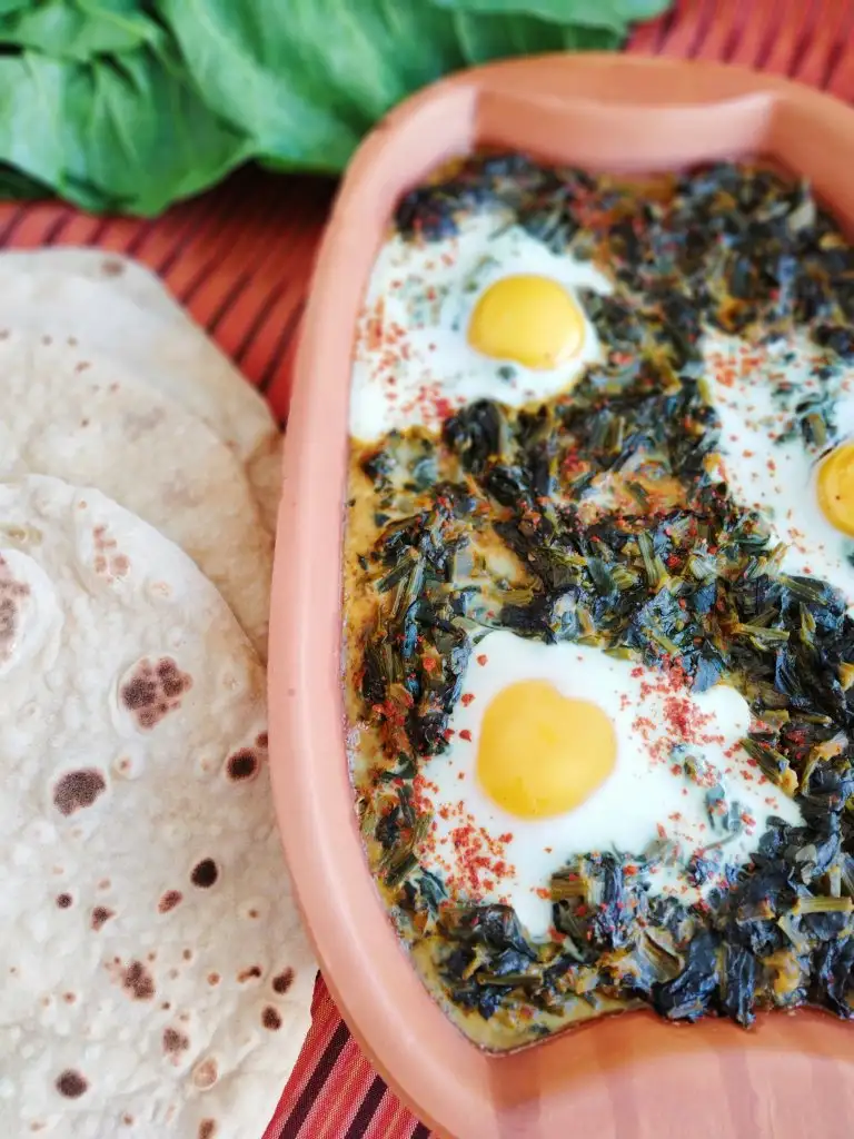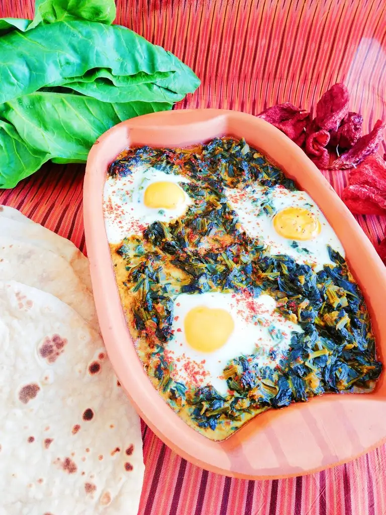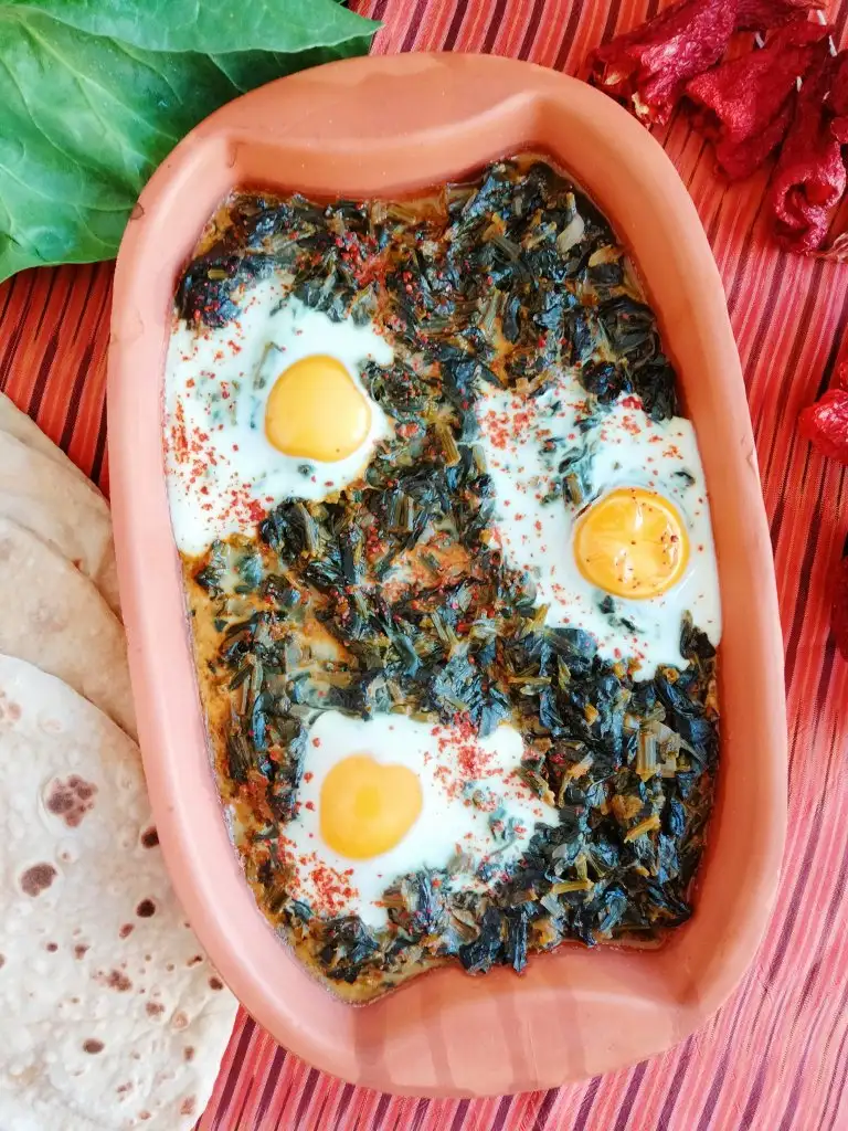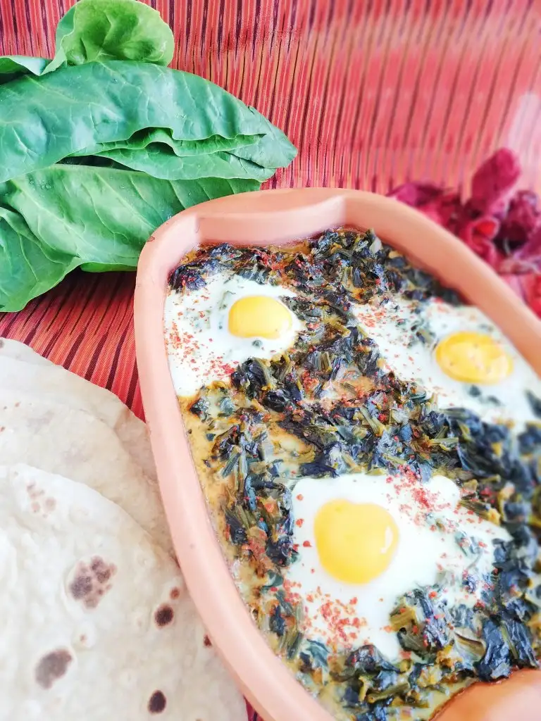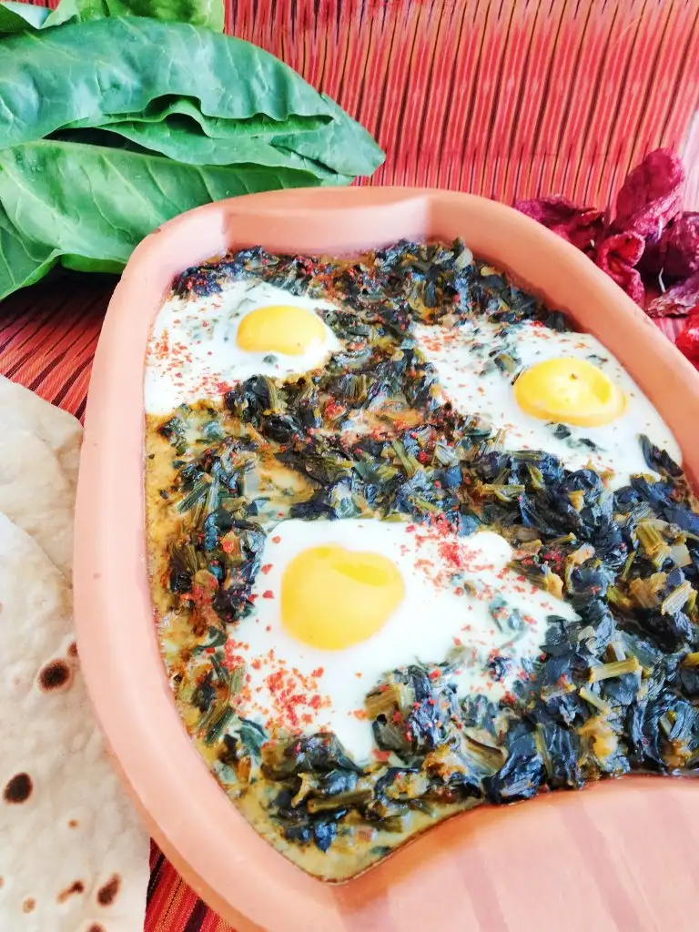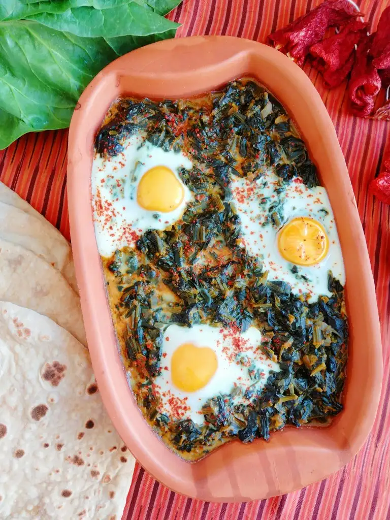 Yumurtalı Ispanak,yumurta yemeklerinin en yaygın yapılan tariflerinden biridir. Kahvaltı için olduğu kadar bir öğün yemeği olarak da kabul görür. Hatta Trakya’da esnaf lokantalarında fırın tepsilerine hazırlanmış benzer tariflere rastlarız. Yatılı devlet okullarının, asker karavanalarının menülerinde ıspanaklı yumurta sık sık yer alır.