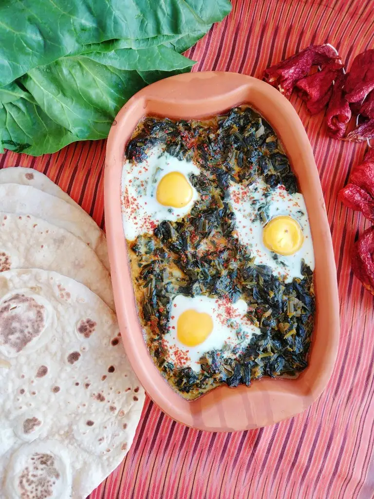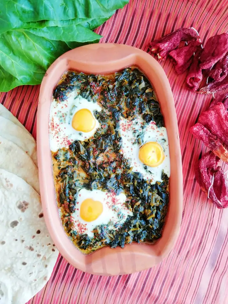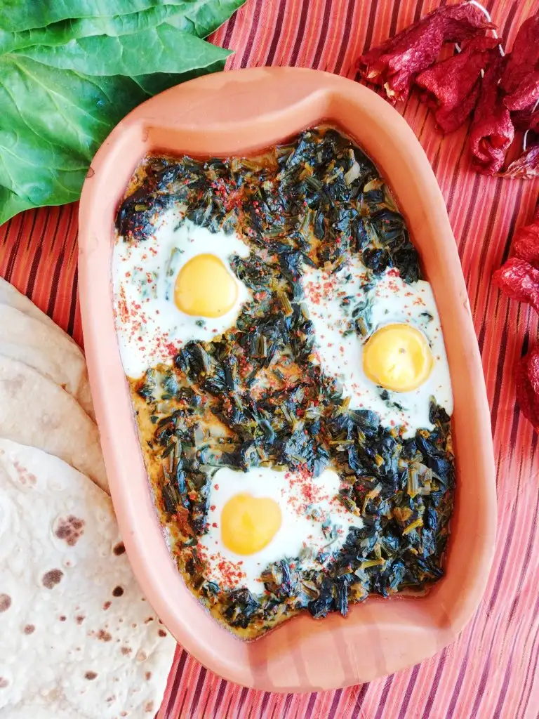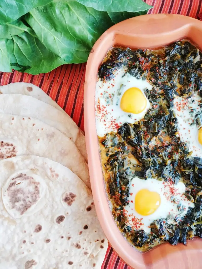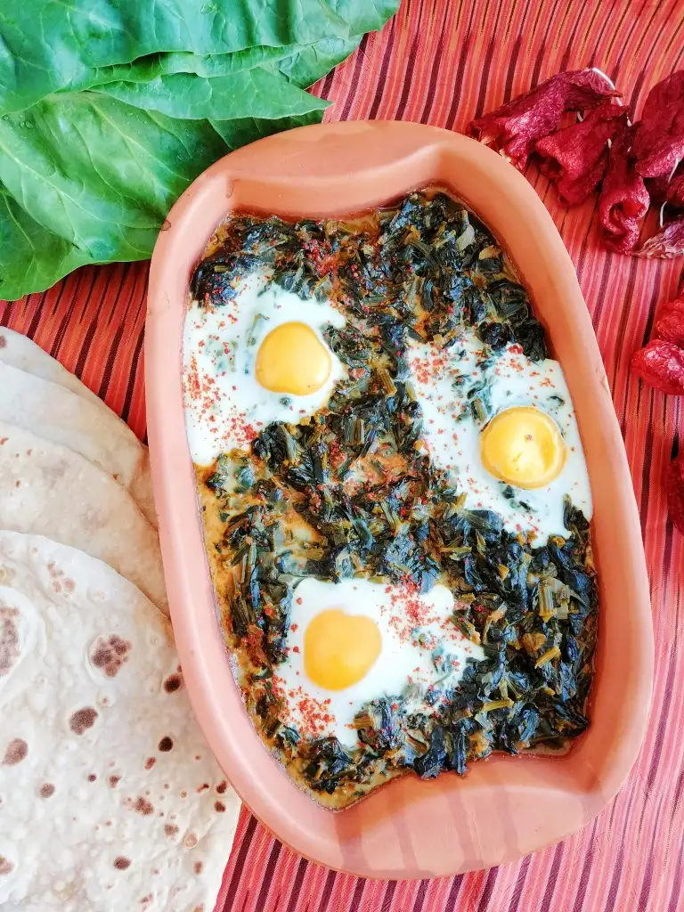 Yumurtalı Ispanak,yumurta yemeklerinin en yaygın yapılan tariflerinden biridir. Kahvaltı için olduğu kadar bir öğün yemeği olarak da kabul görür. Hatta Trakya’da esnaf lokantalarında fırın tepsilerine hazırlanmış benzer tariflere rastlarız. Yatılı devlet okullarının, asker karavanalarının menülerinde ıspanaklı yumurta sık sık yer alır.