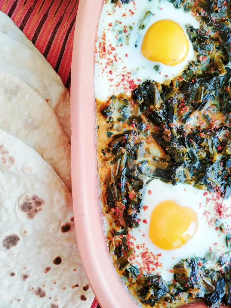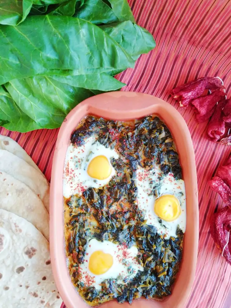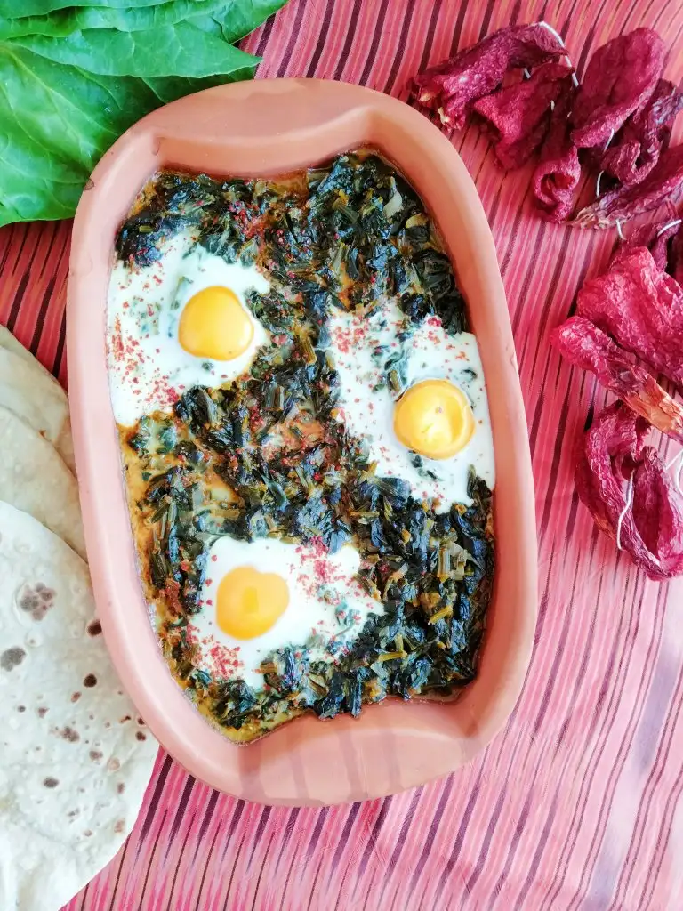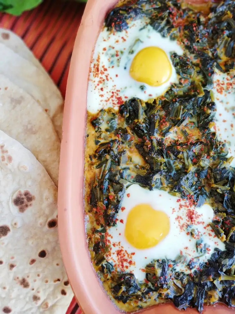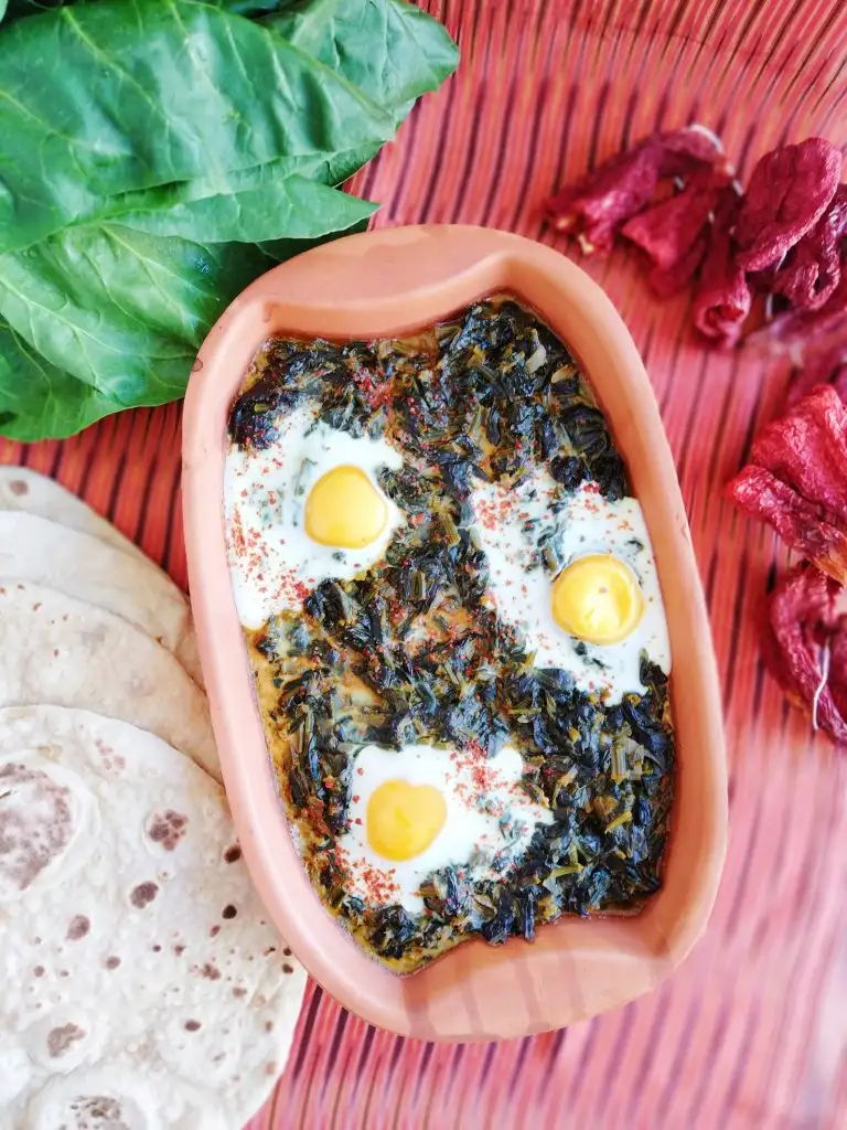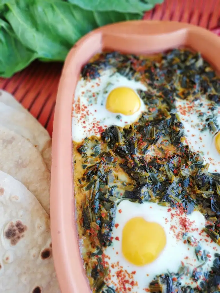 Yumurtalı Ispanak,yumurta yemeklerinin en yaygın yapılan tariflerinden biridir. Kahvaltı için olduğu kadar bir öğün yemeği olarak da kabul görür. Hatta Trakya’da esnaf lokantalarında fırın tepsilerine hazırlanmış benzer tariflere rastlarız. Yatılı devlet okullarının, asker karavanalarının menülerinde ıspanaklı yumurta sık sık yer alır.