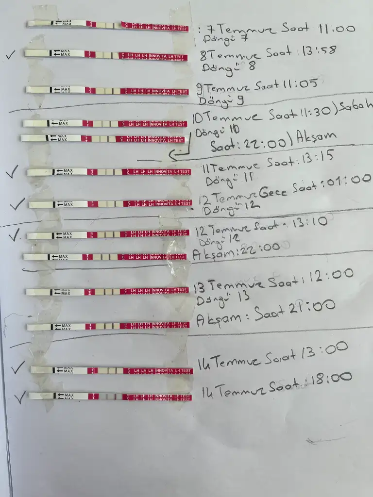 Merhaba, iyim, saat ikide test yapcam, bugün sabah değerlendirme yapacaktık olmadı, normalde testi yapıp sonrasında bir iki saat içinde değerlendiriyordum ancak bugün testten sonra geceyi beklemem gerekebilir, ya diyorum kaçırırsam? dün gece çok yoğun kasık ağrısı ve şişkinlik vardı bugün çok azaldı o yüzden endişeleniyorum, gereksiz evhamdır inşallah, gideyim testi yapıp atayım bari, sen naptın?Merhaba canım ne durumdasın testleri yaptın mı nasıl ilerliyor