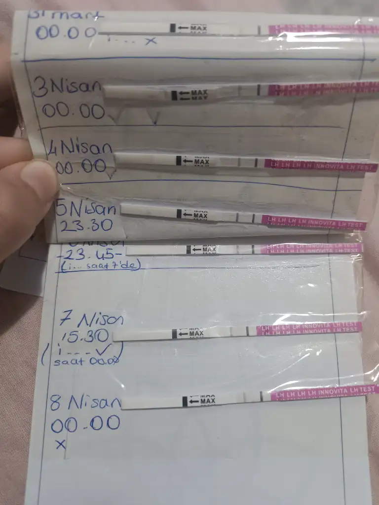 bir buçuk senedir çocuk istiyoruz ve 9 ay önce bir kere düşük yaşadım. Eşimde sperm sorunu var fakat ilaç kullandı bu ay yükseldi çok şükür. Bende de pco var sanırım bir doktor var diyor bir doktor yok diyor emin değilim fakat adetlerim düzensiz genellikle. 28-33 gün aralığında olurum stres sıkıntım olursa 40a kadar nadiren çıktığı oluyor. 2024 Ekim ayında Ovulasyon takibi yapmaya karar verdim ve eklediğim ilk görseldeki gibi adet bitiminden başladım ve 11. gün yumurtlamam olduğunu düşündüm ama T çizgisi C çizgisinden daha koyu olmadığı için bir tereddütte de kalmıştım yinede o günleri değerlendirdik fakat olmadı. Bir ay sonra eşimde sprem sorunu olduğunu öğrendik ve ondan kaynaklı olmadığını anladım bu yüzden üstüne düşünmedim ve takip etmedim eşimin sonuçları iyi çıkana kadar. Bu ay eşimin sonucu iyi çıkınca adet bitiminden yakalayamadım fakat ara ara ovulasyon testi yaptım öylesine. adetime 9 gün kala koyu çift çizgi çıktı fakat test bozuk gibiydi çizgiler cok inceydi ertesi gün tekrar yaptım kop koyu çift çizgi çıktı çok şaşırdım ertesi günde azıcık silikleşti. Yumurtlamamı bir önceki takibime göre adetimden 11 gün sonra sanıyordum. bu ay bakarsam adetimden 24 gün sonra yumurtlamış oluyorum. Bu şekilde yumurtlama günü bu kadar gün değişiklik gösterebiliyor mu? Ovulasyon testinden gebelik öğrenenleri görünce acaba hamile miyim diye düşündüm fakat hiç belirtim yok son test biraz silikleşince muallakta kaldım. Başına böyle bir şey gelen var mı daha önce bana fikir verebilir misiniz?