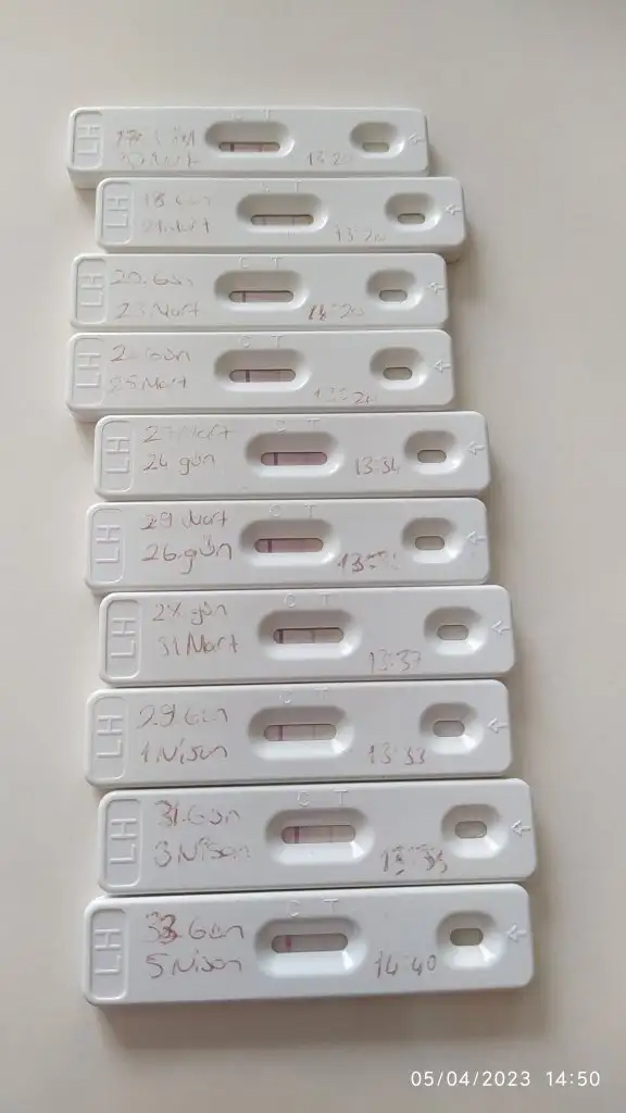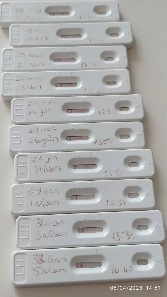 Merhaba arkadaşlar bu ay yumurtlama testine başladım ama ikinci çizgi hala belirgin değil normalde adet duzensizligim var geçen ay 43.gun adet oldum öncesinde 48,49 günde bir adet olurdum yumurtlama testi yaoiyorum ama ikinci çizgi hala net belli olmadı yaomaya devam etmeli miyim yoksa yumurtlamam olmadı testlere göre yorum yaparsınız çok sevinirim