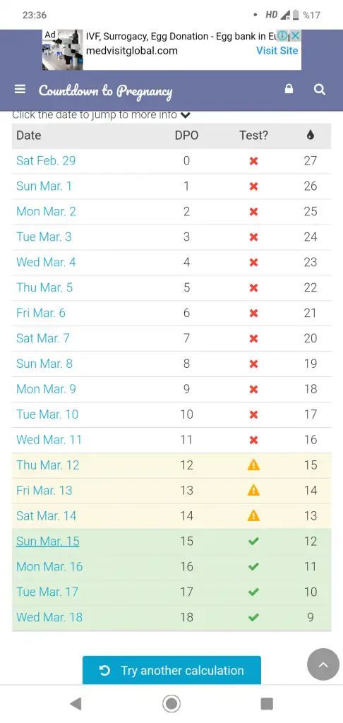 Pregnancy test calculator - When to take a test - Countdown to pregnancy