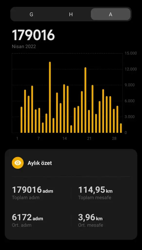 Vuuu iddiaya gelBu galiba..ama saatimi takmadigim telimi aldığım zamanlar da vardı.adimlarim Fena sayılmaz değil mi?.Bayramdan sonra 1 aylık kampa giriyorum.net 10.000 adım + diyet.6 kilo vericem okul kapanana kadar insallah