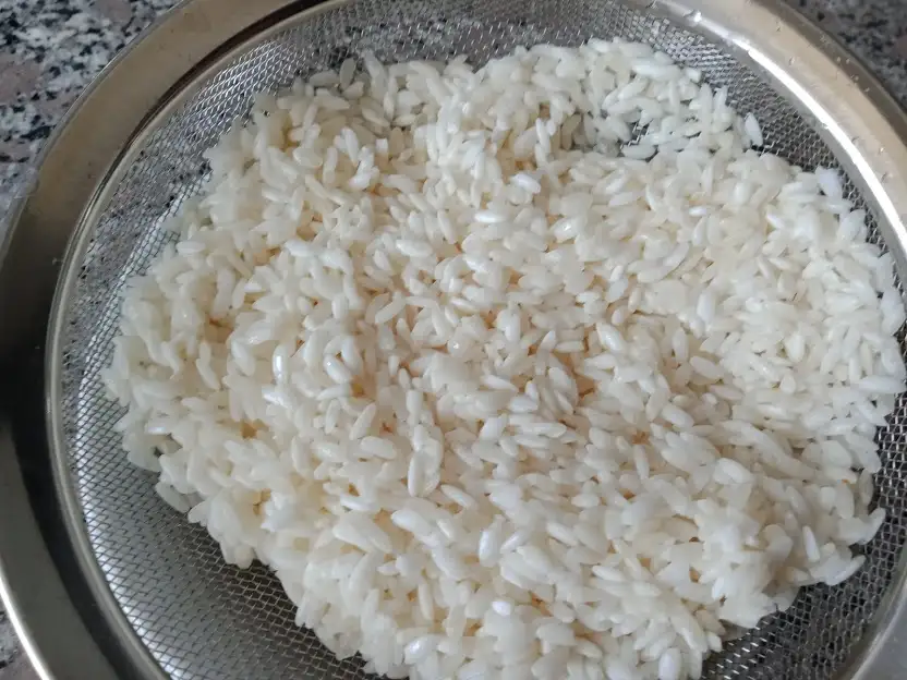 -Yarım saat suda bekleyen pirinçlerimizi süzgece alıp süzülmesini bekleyelim..