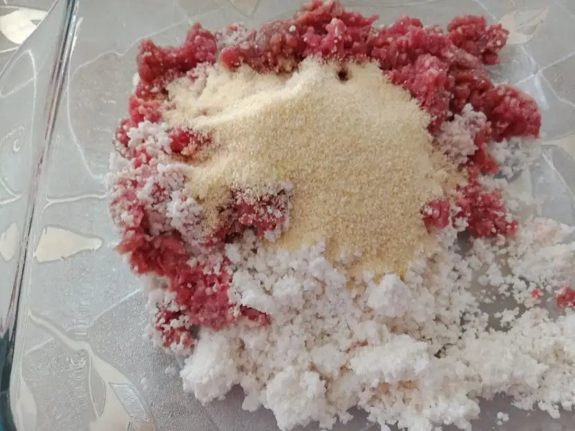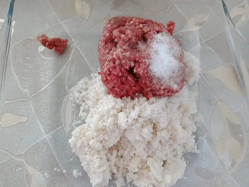 -Pirinçlerin üzerine kıymayı,irmiği, tuzu ekleyip yoğurun.