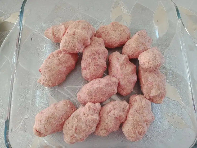 -Yoğurduğunuz kıymadan parçalar alıp elinizde sıkın yapın.