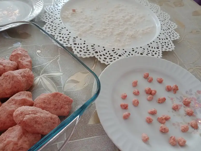-Sıktığımız bu hamurları nohut büyüklüğünde köfteler yapın.