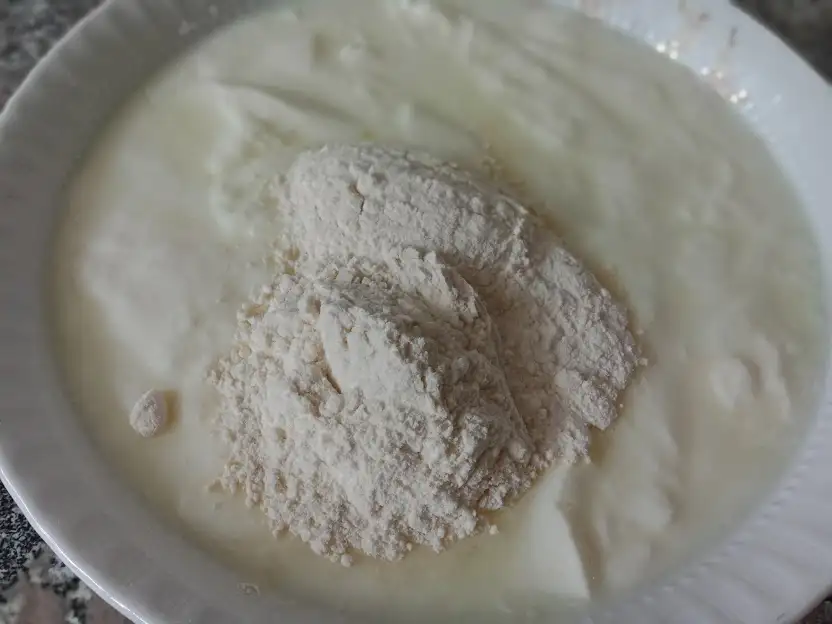 -Çorbanın terbiyesi için yoğurt ve 3 kaşık unu bir kapta güzelce çırpın.