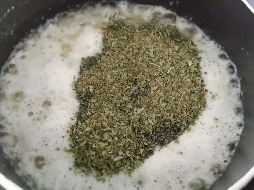 -Bir tava da tereyağ eritip ,yarım çay bardağı sıvı yağ ekleyin ve naneyi yağda kızartın.