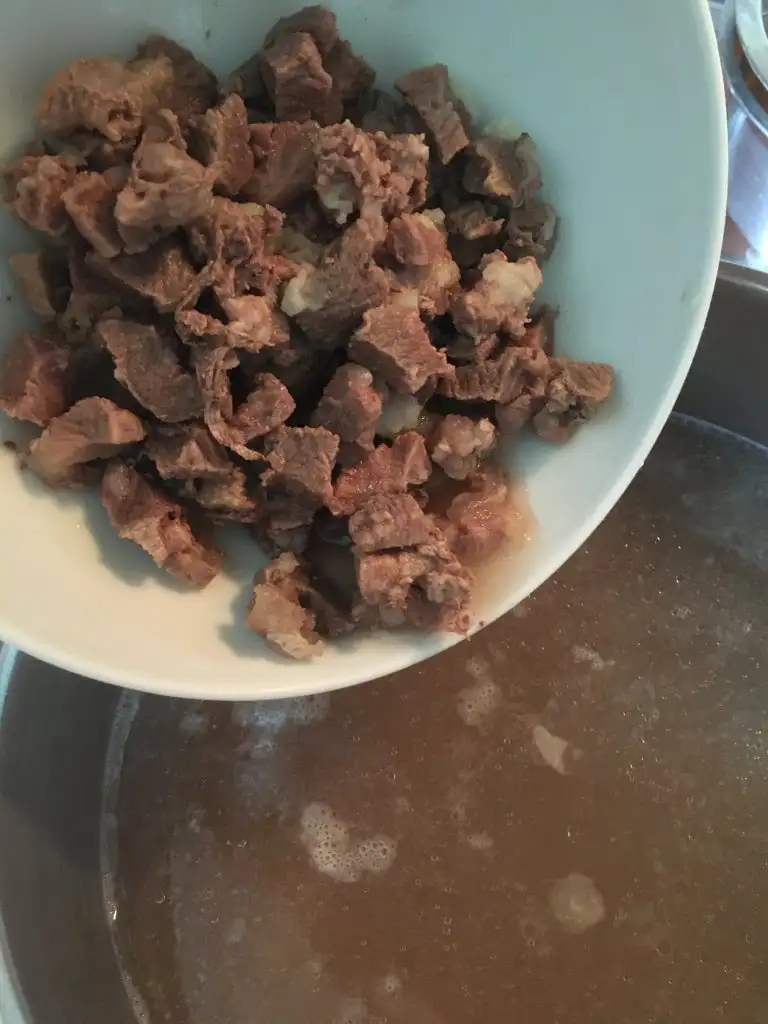 Tencereye suyumuzu ve haşlanmış etimizi suyu ile birlikte alalım. Nohutumuzu ekleyelim.