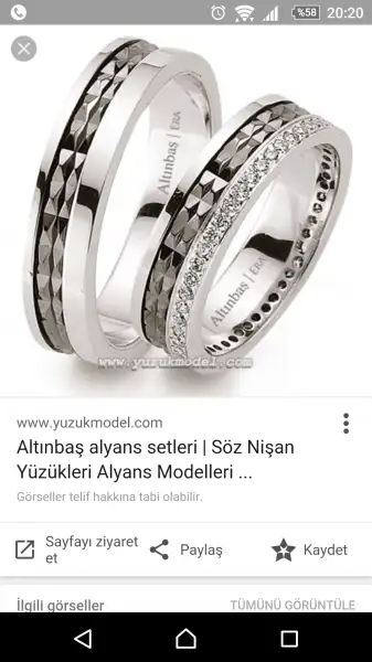 Başkasının fikrini önemsersen sevdiğin şey içinde kalır hemşerim merhaba bu aradaMerhaba kızlarBayamdn iki hafta sonra Allah nasip ederse sözüm olcak.. Söz ile nişan arası çok uzun sürmeyeceği için ayrı olarak söz tüzüğü istemedik, alyans almaya karar verdik.. Bi model beğendik, ben diğer alyans modellerini pek beğenmedim, bu tarzlar daha çok hoşuma gitti.. Ama kimisi "alyansa benzemiyor " dedi, kimisi "erkeğin yüzüğü kız yüzüğü gibi" dedi, kimisi beğendi.. Siz ne düşünüyorsunuz? Bu tarz alyans olmaz mı? Erkek yÜzüğü uygun değil mi? Bu tarzlarda yüzükler için nerelere bakabiliriz biliyor musunuZ ?