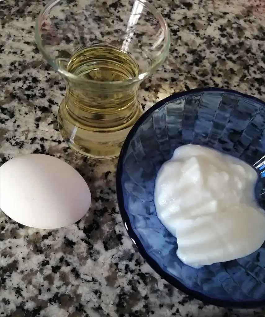 Yumurta, yoğurt, tuz, sıvı yağı bir kapta karıştırıyoruz