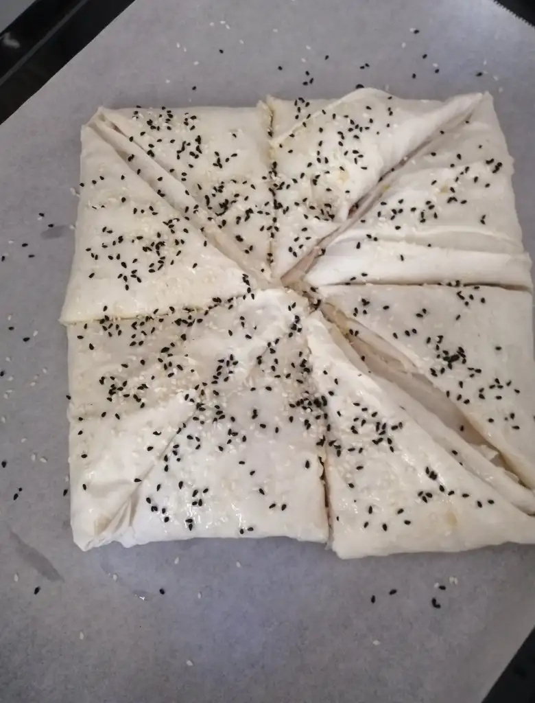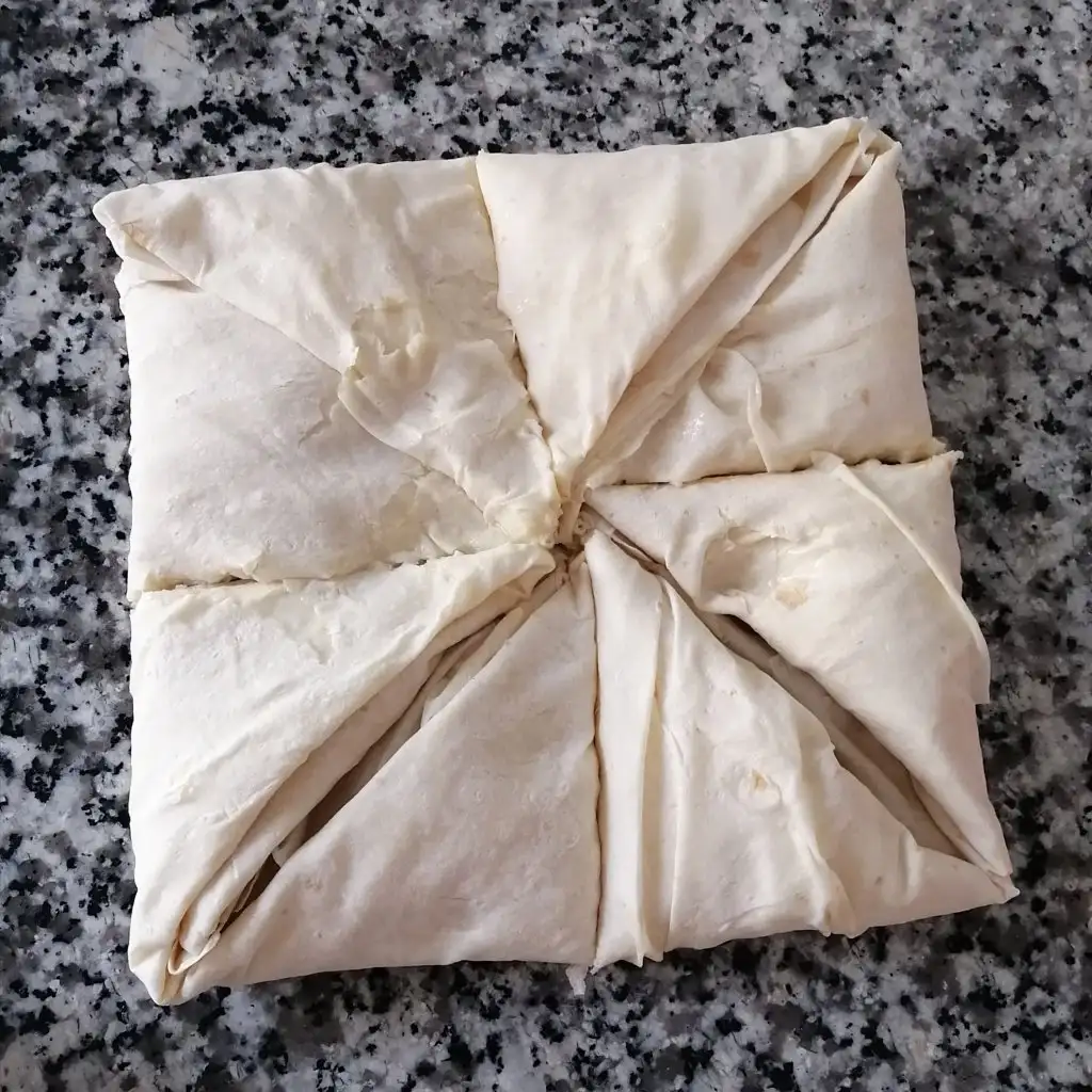 Ardından hazırladığımız harcı ekliyoruz kapatıyoruz zarf şeklini veriyoruz