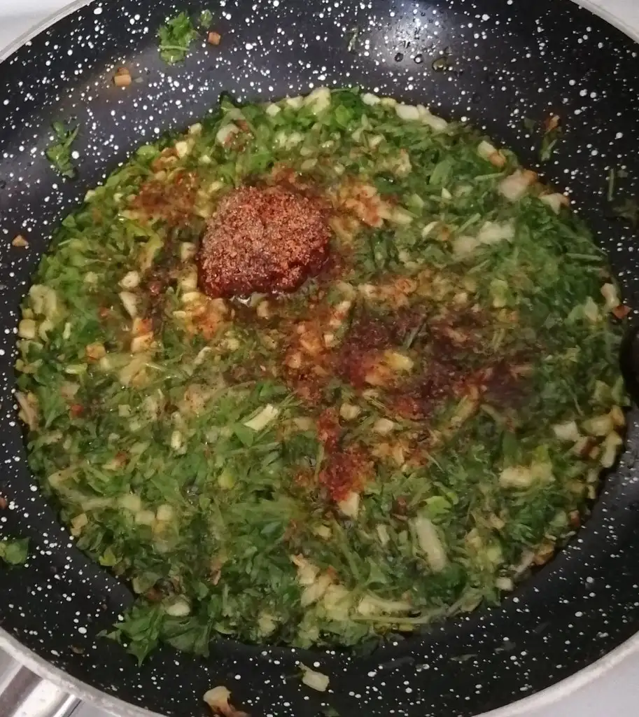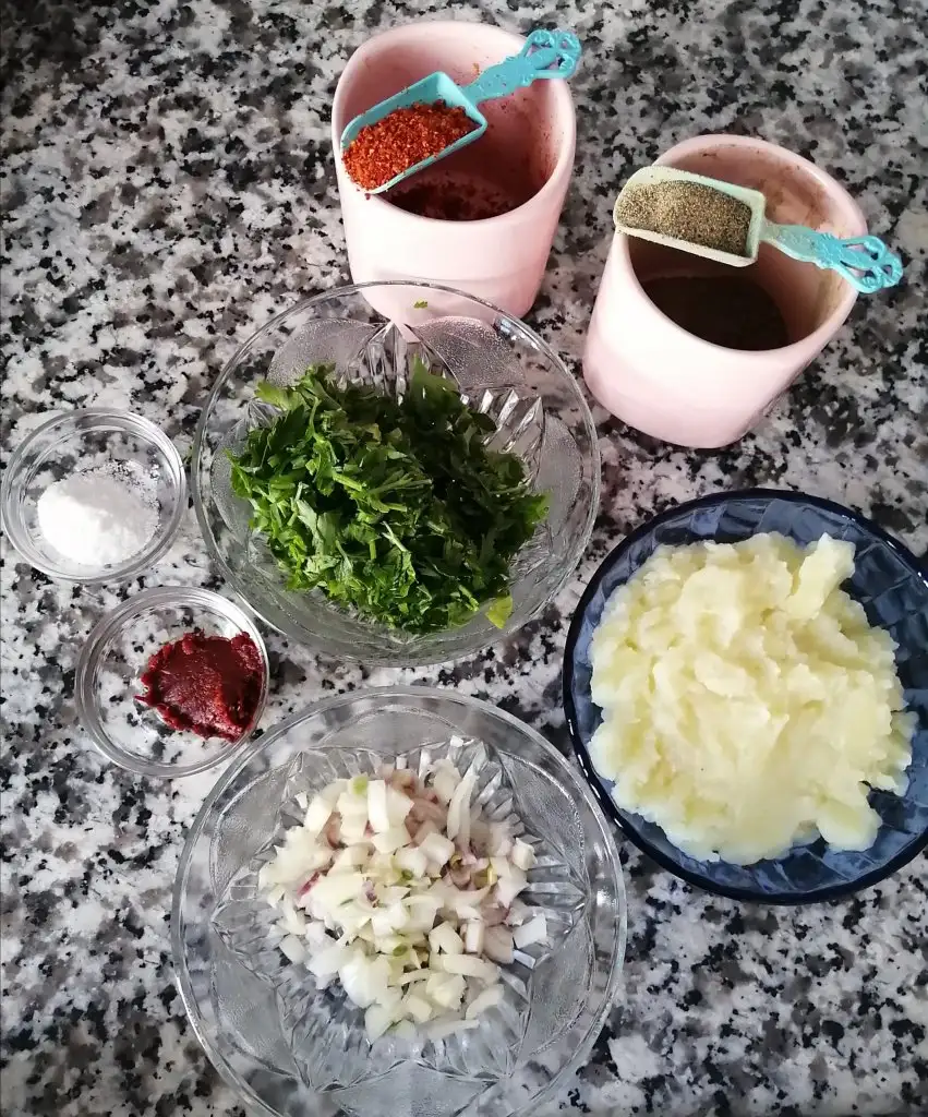 Patatesleri haşlayıp soğanı maydanozu yagda soteleyip üzerine baharatları ekliyoruz en son patatesi koyup karıştırıp kapatıyoruz