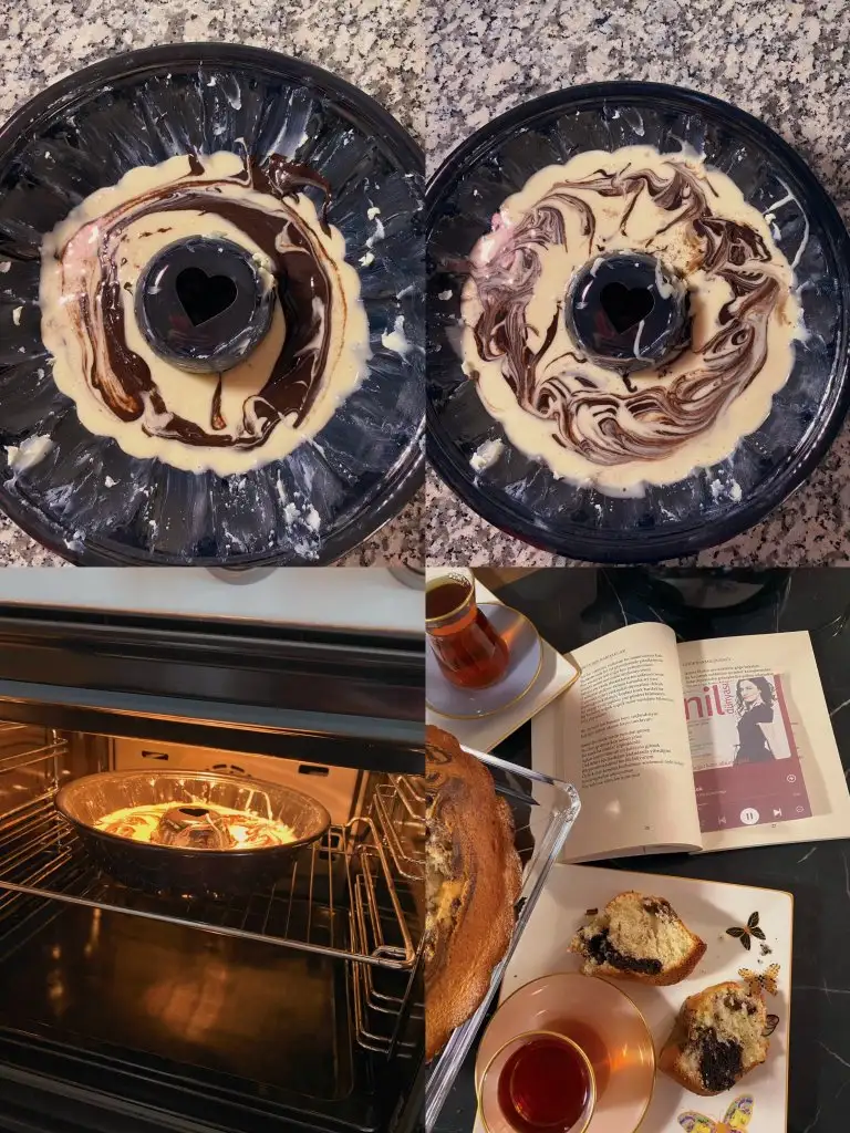 Karışımımın bir kısmını başka bir kaba alıp içine 2 yemek kaşığı kakao ekliyorum. önce beyaz kısmını, ardından kakaolu kısmını üst üste dökerek servise hazır hale getiriyorum. Fırın kabımı tereyağı ile iyice yağlayıp önceden ısıtılmış 170 derece fırında 35 dakika boyunca pişiriyorum. Afiyet olsun :)Eki Görüntüle 3336825 Eki Görüntüle 3336828 Eki Görüntüle 3336829 Eki Görüntüle 3336830 Eki Görüntüle 3336831 Eki Görüntüle 3336832