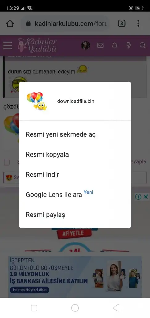 chrome de emojinin üstüne basınca linki kopyala cikmiyor. resmi yeni sayfada acip ustten linkini kopyala oyle yap o zamanEvet kuzum
