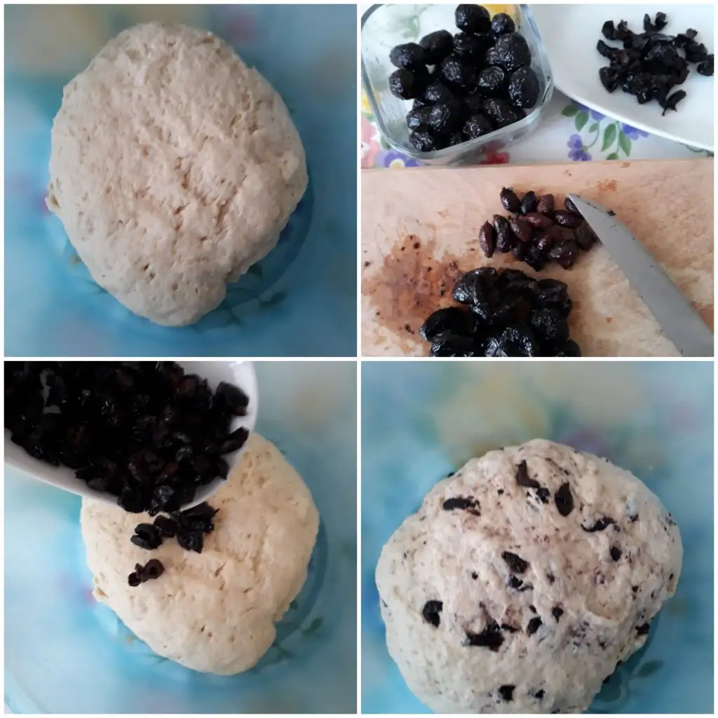 zeytinlerin çekirdeklerini çıkartıp doğruyoruz. Hamurumuza ekleyip güzelce karıştırıyoruz.