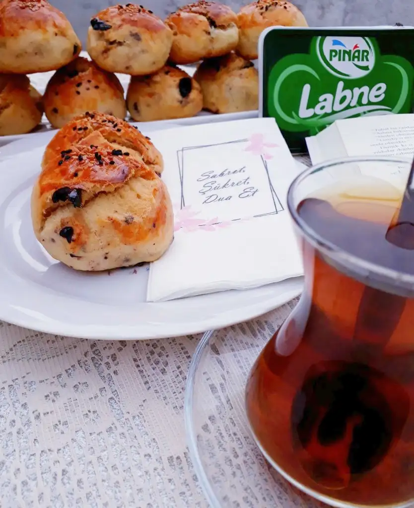 küçük parçalar alıp yuvarlak yapıyoruz ve tepsiye diziyoruz. Isterseniz hamura karıştırmadan da yaparsınız ama ben böyle sevdiğim için böyle yapıyorum. Üzerine yumurta sarısı, susam çörekotu döküyoruz. Önceden ısınmış fırında altı ve üstü kızarana kadar pişiriyoruz.
