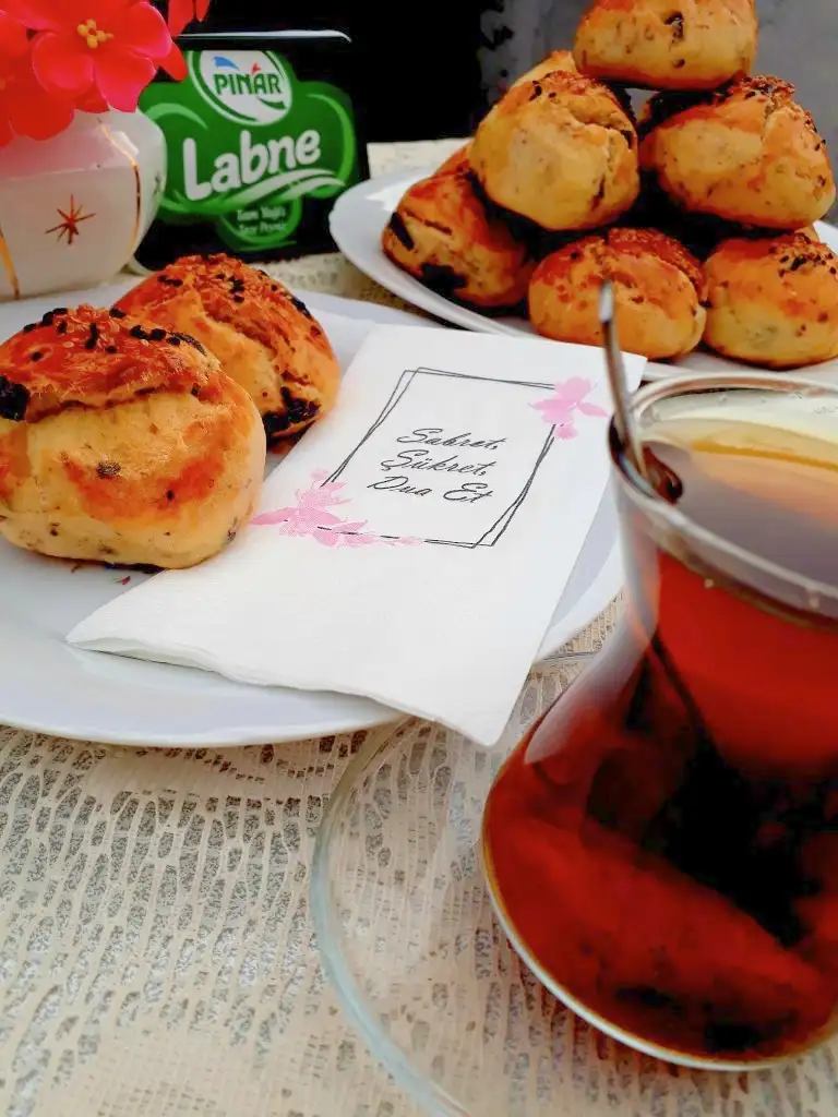 küçük parçalar alıp yuvarlak yapıyoruz ve tepsiye diziyoruz. Isterseniz hamura karıştırmadan da yaparsınız ama ben böyle sevdiğim için böyle yapıyorum. Üzerine yumurta sarısı, susam çörekotu döküyoruz. Önceden ısınmış fırında altı ve üstü kızarana kadar pişiriyoruz.