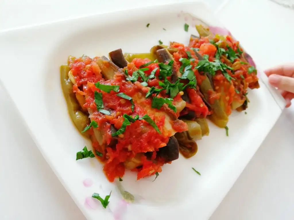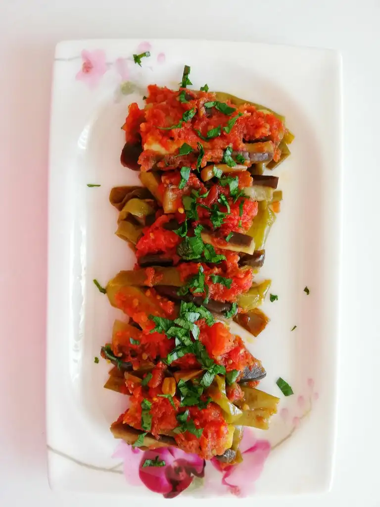 -Sadece fasulye patlıcan ve domates koyarak da yapılabilir. Biber kabak sevmiyorsanız koymayın.