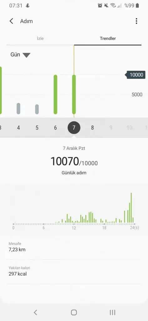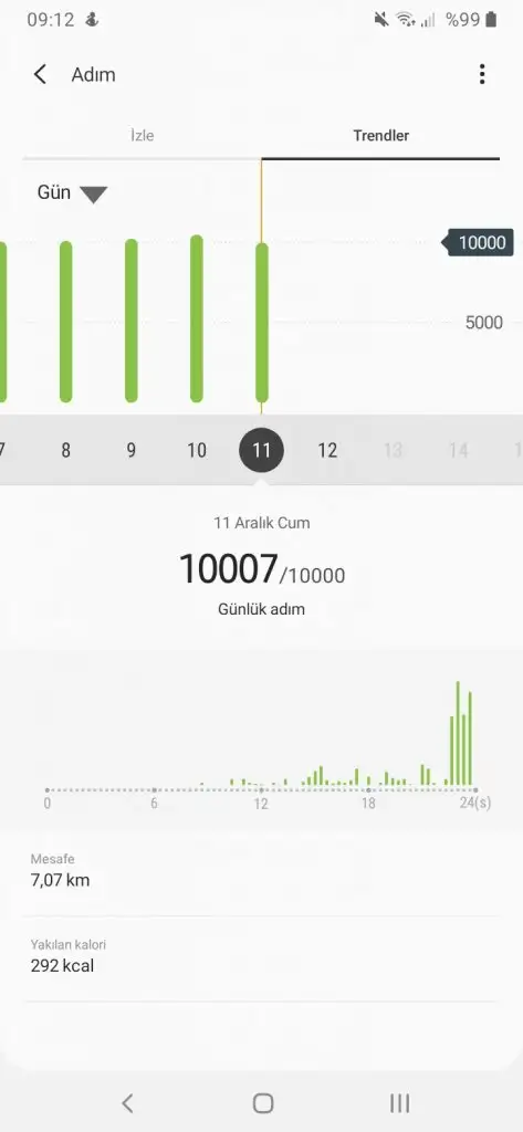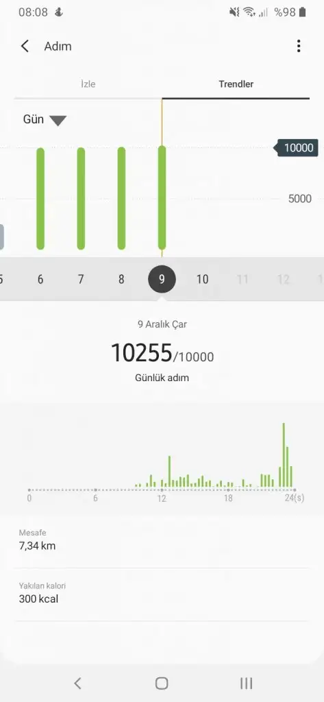 Günlük attigim adimlari ertesi sabah paylaşacağım