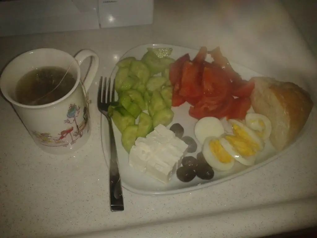 sabah değişmez kahvaltım 10 gibi yapıyorum yumurta, peynir, domates ve bir dilim ekmeğimi yedim o kadar çay tabi.. dün aşırı sususzluk hissettim sabah uyandığımda 2 büyük bardak su içtim kahvaltıdan sonra da devam etti sanırım 2 litreyi geçtim dün. normalde suyu sevmem ama dün isteyerek içtim.