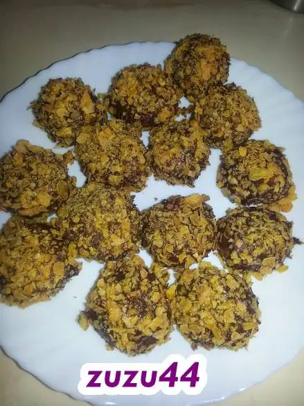 Margarin, sıvı yağ, yumurta ve pudra şekerini iyice karıstırın. 4 su bardağı mısır nişastası ve kabartma tozunu ekleyerek yoğurun. Yavaş yavaş un ekleyin kulak memesi yumuşaklığında olsun hamur. ufak parçalar halinde yuvarlayın elinizde. tepsiye yağlı kağıt üzerine dizin. Önceden 170 derece ısıtılmış fırında altı hafif pembeleşene kadar pişirin.üzeri fazla pembeleşmeden fırından çıkarın soğumaya bırakın.. Fırından çıkardığımız kurabiyeler ılınırken cokomisi yani çikolatayı kurabiyenin her tarafına sürün. Mısır gevreklerini hafif elinizde ufalayın ve önceden sürülmüş çikolatalı kurabiyeleri mısırgevregiyle kaplayın her tarafını. Afiyet Olsun :)